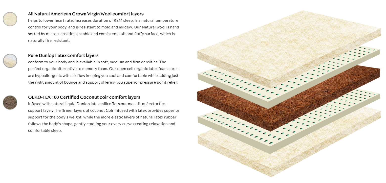 The Vegan Coco Sleep Extra Firm Mattress exemplifies clean sleep. Made of all-natural and organic materials, the Vegan Coco Sleep Mattress boasts PLA Fiber, natural botanical latex, a coconut fiber core, and an organic cotton cover.